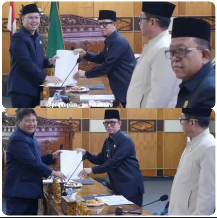 Adapun pengesahan 5 Raperda yang terdiri dari 4 Raperda inisiatif Pemkab OKU dan 1 Raperda Inisiatif DPRD OKU itu ditandai dengan penandatanganan oleh Bupati OKU H Teddy Meilwansyah bersama Wakil Ketua I DPRD OKU Rudi Hartono dalam Rapat Paripurna ke-XLVII DPRD OKU Masa Persidangan ke – 1 tahun 2025 dengan agenda Penyampaian Laporan Pendapat Akhir Fraksi DPRD OKU dan dilanjutkan penandatanganan keputusan bersama terkait pembahasan Raperda Kabupaten OKU Tahun 2025,Senin (20/10/2025).